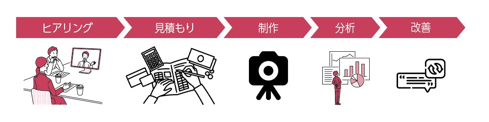 映像コンテンツを通じて最終的な着地点を共有し、最適な導線・価格を提案します。またデータの分析・市場の流れとの比較検討をして最適な映像コンテンツの制作を提案していきます。